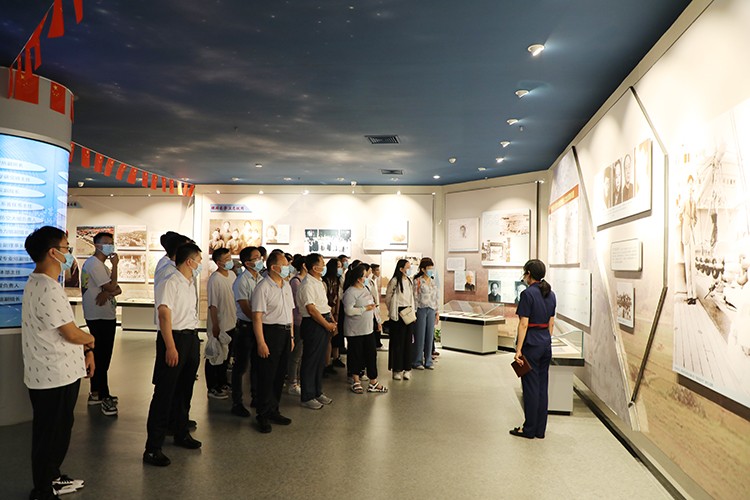 甲午海戰(zhàn)泣山魂海魄,不沉戰(zhàn)艦揚中華軍魂。7月8日上午,大家來到劉公島黨性教育基地,回顧百年歷史,汲取奮進力量。同志們先后參觀了中國甲午戰(zhàn)爭紀念館、歷史選擇館、中國甲午戰(zhàn)爭博物院,重溫中國第一支近代化海軍從組建到全軍覆沒的悲壯歷史,海戰(zhàn)中為國捐軀的北洋海軍將士們英勇頑強、不屈不撓的精神深深感染著在場的每個人?!疤斓赜⑿蹥?,千秋尚凜然”,大家深感今天的幸福來之不易,紛紛表示應珍惜現(xiàn)在,放眼未來,接過時代的接力棒,以一往無前的奮斗姿態(tài)和永不懈怠的精神狀態(tài),答好新時代的“答卷”,埋頭苦干,勇毅前行,在山川湖海間留下奮斗的足跡。