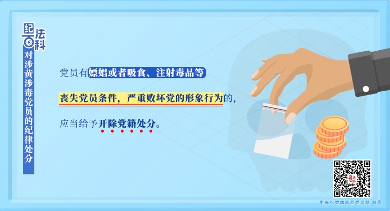 《中國共產(chǎn)黨紀(jì)律處分條例》第三十條第三款規(guī)定,黨員有嫖娼或者吸食、注射毒品等喪失黨員條件,嚴(yán)重?cái)狞h的形象行為的,應(yīng)當(dāng)給予開除黨籍處分。