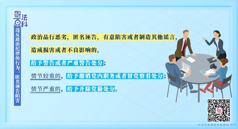 《中國(guó)共產(chǎn)黨紀(jì)律處分條例》第五十九條第二款規(guī)定,政治品行惡劣,匿名誣告,有意陷害或者制造其他謠言,造成損害或者不良影響的,給予警告或者嚴(yán)重警告處分;情節(jié)較重的,給予撤銷黨內(nèi)職務(wù)或者留黨察看處分;情節(jié)嚴(yán)重的,給予開除黨籍處分。