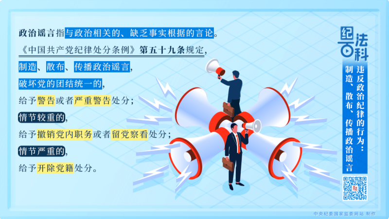 政治謠言指與政治相關(guān)的、缺乏事實(shí)根據(jù)的言論。執(zhí)紀(jì)監(jiān)督中發(fā)現(xiàn),有的黨員、干部為攫取個(gè)人利益或博人眼球,打著“聽知情人士說”等旗號(hào),制造、散布、傳播政治謠言,對(duì)所在地區(qū)和單位的正常工作造成干擾,對(duì)政治生態(tài)造成損害,必須以嚴(yán)明的紀(jì)律加以約束和震懾。