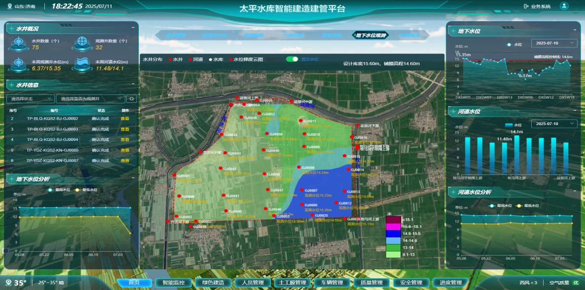 結(jié)合平原水庫特點構(gòu)建水井系統(tǒng)化管理體系,通過找井定位-一井一檔-水位觀測-封堵評估全流程閉環(huán),實時采集多時段水位數(shù)據(jù)并開展趨勢分析,為土方開挖時序優(yōu)化、土料晾曬、土工膜鋪設(shè)施工控制提供科學(xué)依據(jù);精準(zhǔn)控制水井封堵質(zhì)量,實現(xiàn)全周期數(shù)據(jù)化決策支持。